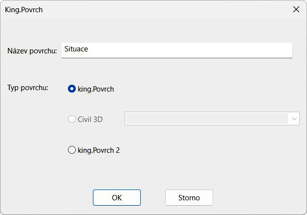 Zobrazí se tato informace. Nový povrch se chybně přeřadí k Teren – VIA. Teprve definováním povrch se název přiřadí správně, jak je vidět na vedlejším obrázku. Toto chybné přiřazení lze opravit pouze v sekci Teren, přiřazením souřadnic se problém neřeší.