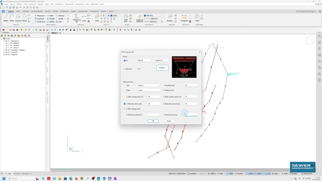 Nová šachta, definování vstupu a výstupu u šachty v Sewer+