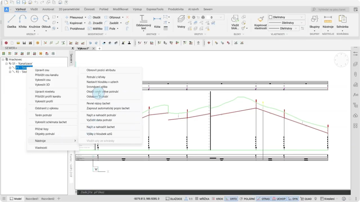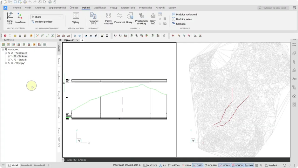 Navržení sítí a vykreslení podélných profilů