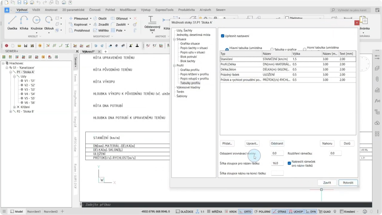 Vkládání objektů do potrubí v situaci a profilu ze souboru a vytváření objektu v Sewer+