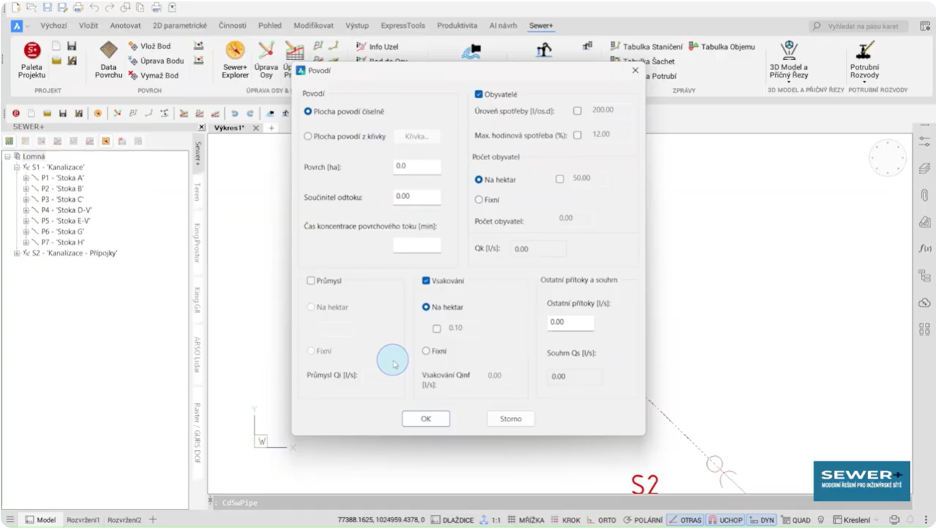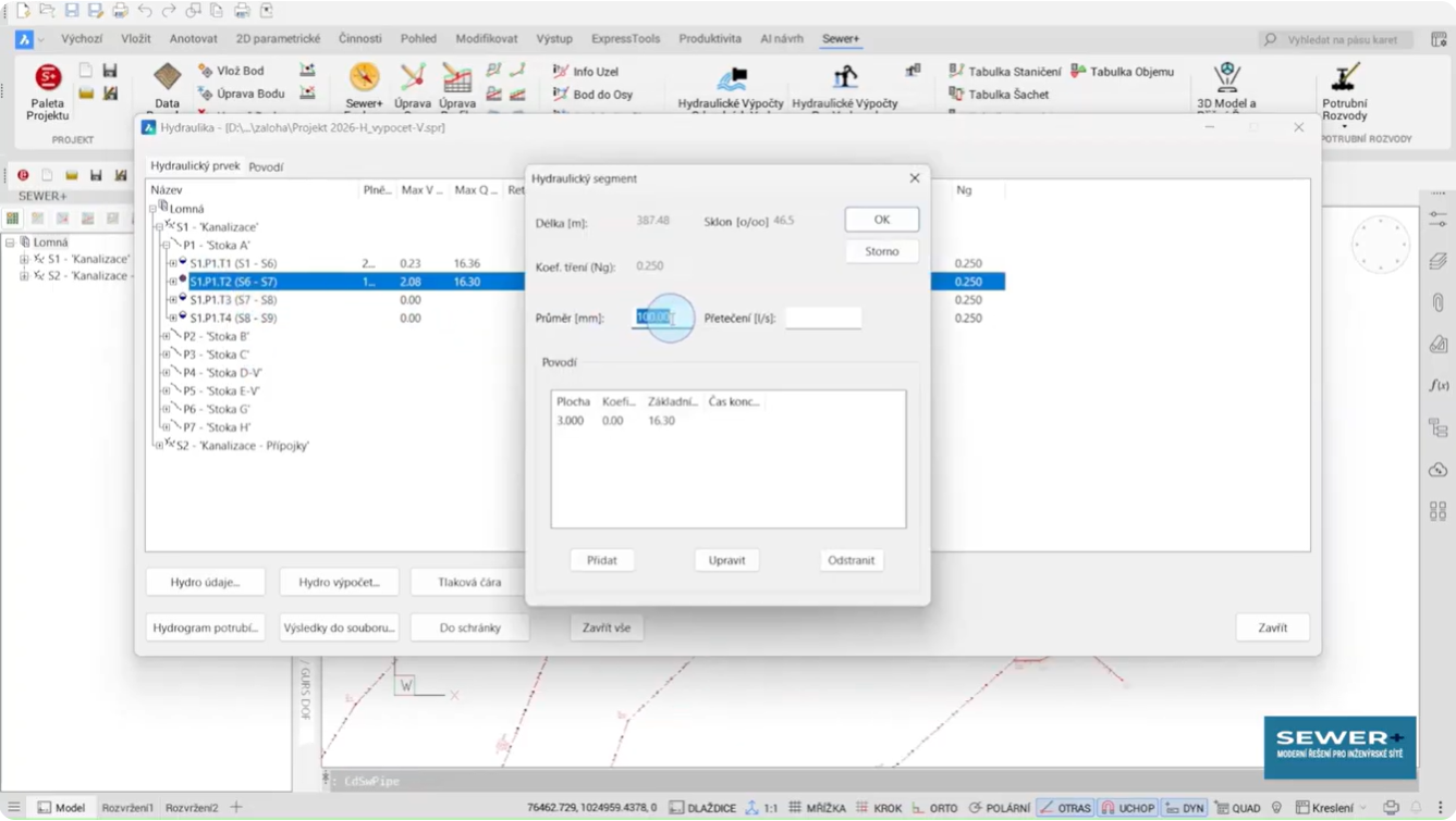 Výpočet hydrauliky kanalizačních vod v Sewer+ a jeho export do tabulkového programu